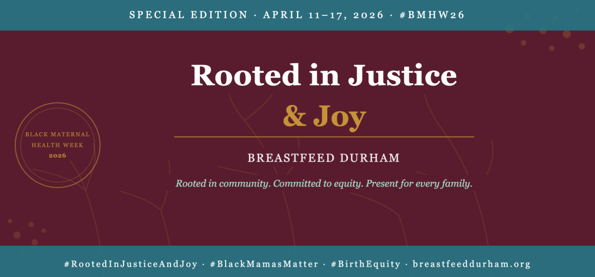Breastfeed Durham serves all Durham families, with equity as our foundation. Black families are at the center of our equity lens. And during this week, we lift up the organizations in our community doing specifically Black-centered perinatal work: MAAME, Inc. and Equity Before Birth. Thank you for your leadership, love, and labor for Black Mamas in Durham; it is irreplaceable.