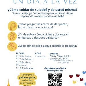 Una Día a La Vez: Círculo de Apoyo Comunitario ¡Únese a este círculo de Apoyo Comunitario para Familias Latinas ... 06 Feb 11:00 am - 1:00 pm Iglesia de La Inmaculada Concepción810 W Chapel Hill St, Durham, NC 27701